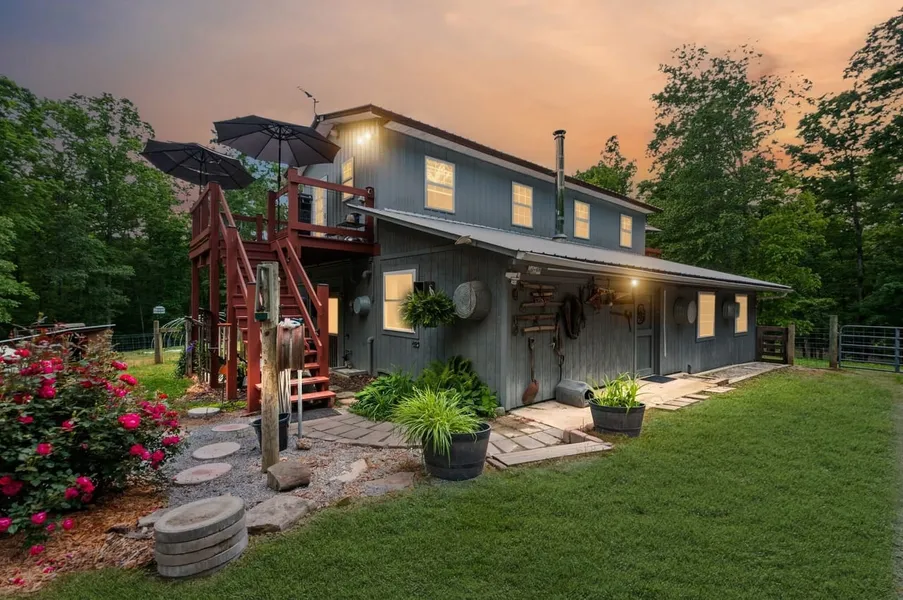 Unwind on your own 12+/- acre homestead in the rolling forest of Southwestern Middle Tennessee, just an hour from Franklin and Nashville on State Hwy 230 providing easy access to I-40. This delightful 2-bedroom, 2-bath modern barn seamlessly blends off-grid living with contemporary comforts. Embrace sustainability with solar power (with easy ability to tie into the power grid) and a 1,500-gallon rainwater collection system, allowing you to choose between city water and rainwater for you and your livestock. A gorgeous 1/3-acre pond sits in the valley below the home, providing additional opportunities for livestock and wildlife watering. Inside, the home boasts a soapstone wood-burning stove on the main floor, creating heat for both the first and second. Fully fenced and cross fenced with woven wire, ideal for privacy and livestock control. Grow your own produce with thoughtfully designed raised beds, mature fruit trees, and a spacious greenhouse, all set up for continuous harvest throughout the year. Enjoy seamless connectivity with fiber internet, making it easy to juggle work and relaxation. Boasting a generous 50x35 workshop/barn, a dedicated wood storage area, filled with oak and hickory for this winter, a chicken coop, and a barn for additional livestock. Whether you’re keen on livestock, launching a small-scale farm, or simply relishing a serene country lifestyle, this home caters to all your desires. Perfect as a weekend retreat or primary residence, this property provides privacy without sacrificing convenience.