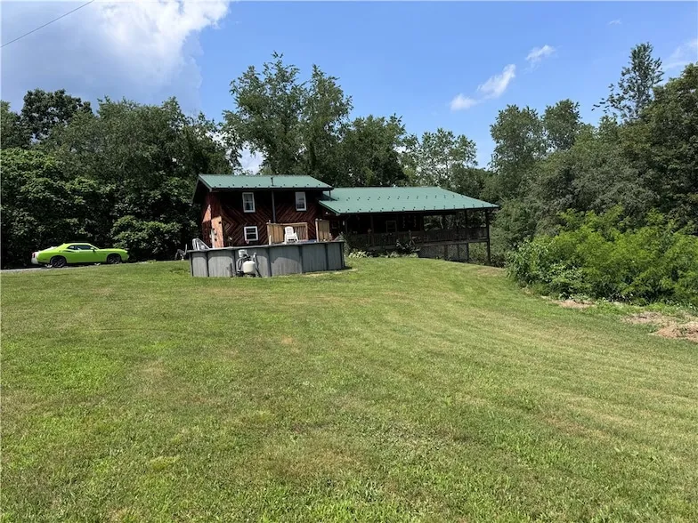 Welcome to the home that checks all the boxes! Over 12 acres of wooded trails with TWO hunting tree stands for the avid outdoor enthusiast. At the end of your long private driveway , you are greeted by the homes wrap-around covered porch to sit and enjoy the summer breeze. If it gets too hot, jump into your 24X54 above ground pool. The large living room and game room offer many entertaining options. The lower level game room has radiant floor heat for all year comfort. The basement is 11X21 with many additional rooms for storage. The laundry has been re-located to the second level half bath. The 30X50 garage is a "must have" with a car lift for ease when working on your vehicles or toys. There are THREE outbuildings, two that were used as chicken coops and a"barn like" shed for storage or additional farm animals. The property is zoned Agricultural allowing you to create your mini Farmett...