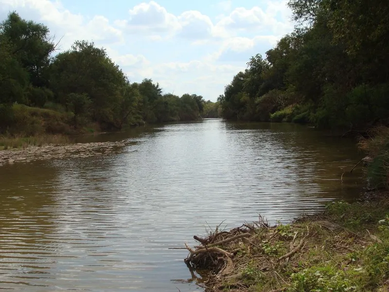 COLORADO RIVER FRONTAGE! This place has it all-12 +/- acres with 400 ft. +/- Colorado river frontage, house (2700+/- ft.) and barns. The acreage is a nice level grass field leading to the house which overlooks the river. The house was originally built in 2000 and added on in 2003. There are 4 bedrooms, 3 baths, separate dining and living areas and two kitchens (one for overflow guests and entertaining). One of the bedrooms could be used as a large game-room. There are two A/C units, 2 water heaters, new windows and ceiling fans throughout and a lot of extra closets for storage. The kitchen has an eat-in bar/counter which is open to the living room and lots of cabinets for storage as well as a large walk-in pantry. There is a covered carport and an additional RV storage garage with an attached closed in storage room. There is also an additional storage/animal barn and a chicken coop with ...