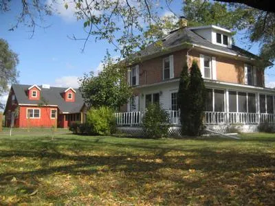 The brick home has a classic front porch. Inside you will find hardwood floors, a woodstove and lots of windows for sunny views of the rolling farmland. Main floor has a laundry room with a half bath. The second floor has 2 bedrooms and a full bath. The attic has been renovated into one large living space and makes a wonderful private master suite. This room could also be a family/med...