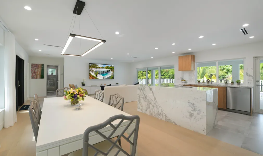 Beautiful completely custom furnished three bedroom, two bathroom elevated home, on a lot and a half, walking distance to all the club amenities. Enjoy this updated home with elevated living area, new kitchen accented with European cabinetry, beautiful Italian marble, incredible millwork and top of line new appliances. Completely renovated bathrooms with natural stone marble. Complete with new washer and dryer. Great open floor plan with European wood floors. Overlooking the beautiful oversized new saline pool and patio accented with outdoor kitchen and grill. The 1,200 sf private pool and patio is great for entertaining and family fun. Under the home there is plenty of room to store bikes, paddleboards and many toys. This home sits on a lot and half that has been recently landscaped. There is plenty of room to expand. This is a gem in the heart of Ocean Reef.