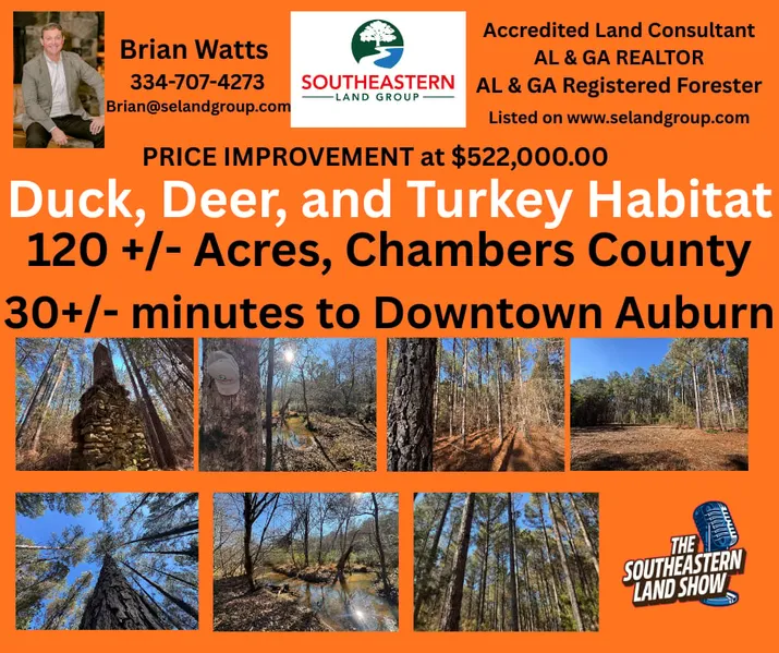 Excellent opportunity to own a mature timberland property in a very beautiful area of Chambers County! Located off of County Road 48, just west of downtown Lafayette, this tracts provides excellent recreation hunting opportunities for Duck, Deer, and Turkey. The property consists of pole and saw timber quality type timber on the northern and southern portions of the property and mature hardwood bottomland and large flowing stream in the middle of the property. There is a deeded access to the property. Power is available at the road. Give Brian Watts a call for more information.