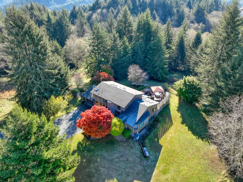 The Ultimate Secluded Retreat on 120 Acres of Pristine Forest, situated above the Coquille River Valley and 15 minutes to Bandon's stunning beaches and charming Old Town. Custom well maintained 4BDR/3.5BA with two master suites, spacious living and dining rooms, downstairs family/recreation room, office, backyard deck with outdoor kitchen, barbecue, hot tub, plus 2,160 sq ft two story shop with indoor parking, workspace and office. Beautiful natural setting with privacy and luxurious amenities.