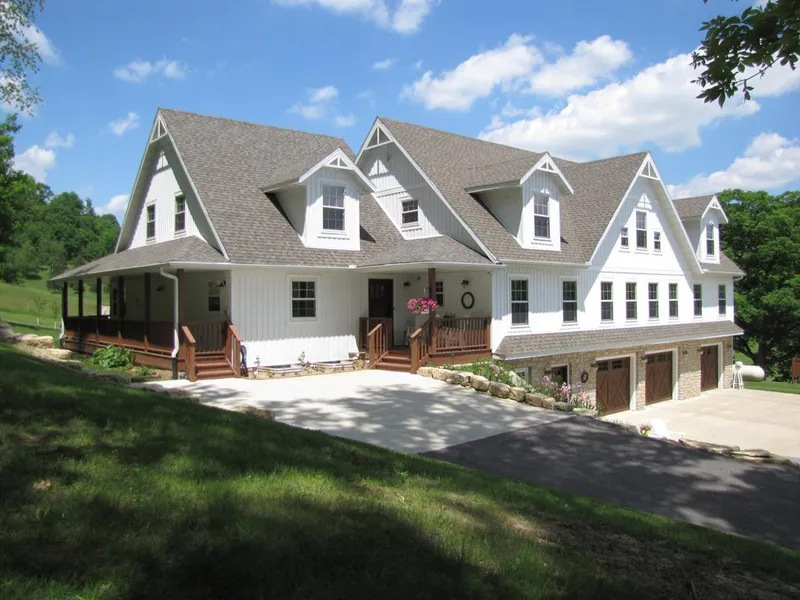The farmhouse style residence complements the majestic setting with 5,762 sq. ft. of living area luxuriously finished in a classic, comfortable manner. The spacious living room with a 19 vaulted ceiling features a Hearthstone wood burning stove enhanced by custom oak cabinets on either side while two double patio doors invite in the pastoral view. This space joins seamlessly with the gourmet kitchen where beauty abounds. Gorgeous African granite tops the quarter sawn oak...