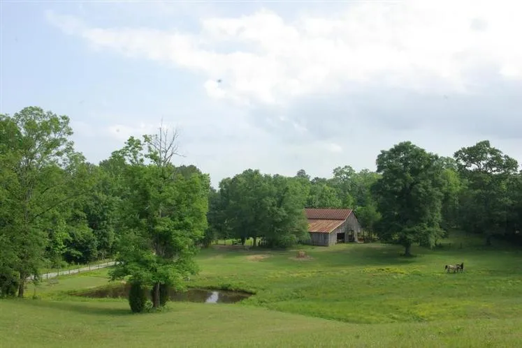 A very unique Farm....Think Cades Cove or Tannehill State Park. 120 acres of UNCUT hardwoods and pines with fenced pasture areas for horses, 2 ponds, and a plantation style homesite with a Rustic Cedar home, 1800's style fencing, and an 1841 restored Cabin customized in charm and character. The main home is one level with 4 BR and 2.5 BA. The Great room has a stacked stone fireplace, expose wood beams, wood ceiling, and customized wood floor and wall from chair rail down. This is also done in the Master Bedroom and even the hallways and guest bedrooms have wood details including walls, trim, floors, and doors. Kitchen features granite countertops, Custom double galley style doors, and built in china cabinets. Huge Mud room/keeping room houses the laudry items and home has 2 huge covered porches. Besides all the unique fencing and details like stained glass items, farm includes 4 car deta...