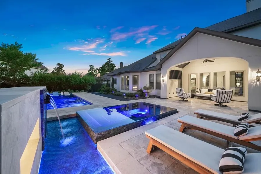 Luxury living awaits in this exceptional Darling Home, a custom retreat in a cul-de-sac. The resort-style backyard showcases an award-nominated pool by Regal Pools. Gourmet kitchen with a chef's dream island, primary bedroom with two exceptional closets, and 5" plank hardwood floors. Elegant lighting, soundproof media room, and a wine cellar for furry friends. Climate-controlled gym in the third-car garage for convenience. Low-maintenance artificial turf and stylish rock landscaping for daily relaxation. Embrace daily vacation living in this one-of-a-kind property.