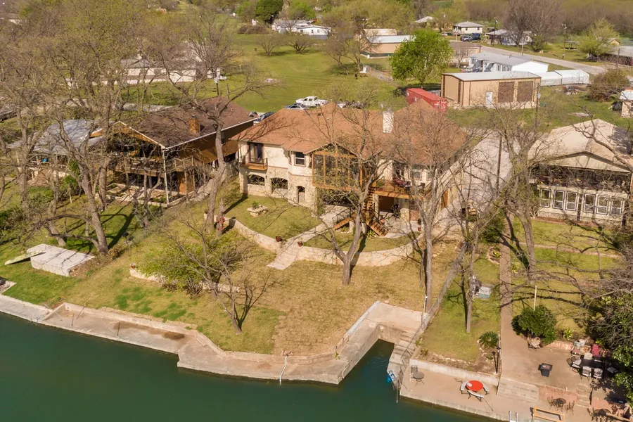 This beautiful lake front property boasts a gorgeous native stone, stucco, and cedar exterior overlooking 100 of a sheltered part of Lake LBJ (Colorado Arm). Constant level Lake LBJ provides water, even in drought conditions. The State Fish Hatchery across means that there are no houses in the lake view.