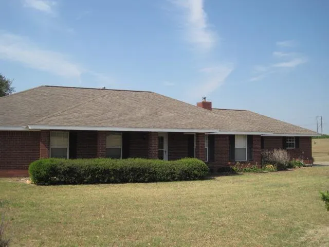 Incredible red brick, 3bd/2ba home is located on a hilltop with 121 acres. This great ranch has 2 stocked ponds, fields for grazing or hay with scattered trees & rolling hills. The view goes for miles. Outdoor improvements include 2 large barns, workshop, working cattle pens, smokehouse & the pastures are fenced. ~50 acres is being leased for farming and 2011 crop will belong to the lessee. Very comfortable home w/custom features & a bright open floorplan. No minerals or mineral leasing rights convey.