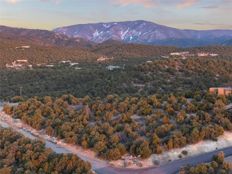 Sited high in the Sangre De Cristo foothills yet only a paved 8-minute drive to the Santa Fe Plaza this spectacular view homesite offers dramatic 360-degree views, including sunsets across the entire Jemez range, distant San Antonio Mountain, northeastern views of the Santa Fe Ski basin, eastern views of the “Snow Hearts” below Thompson Peak and on a clear day north to Colorado! In the evenings, enjoy hours of twinkling Santa Fe & Los Alamos City lights, an ocean of stars & astounding eastern moonrises! This quiet, private, corner homesite is one of the last remaining, easily buildable large acreage lots in the coveted Sierra Del Norte Subdivision (2.026 acres per a 5/18/2023 survey). Due to the lot configuration, there is a preferred building site located on a relatively level “saddle” which provides an elevated view to the West/Northwest & East/Southeast. This ideal location provides a generous, easily developable building envelope with portions in both the “Foothills” & “Ridgeline” classifications. Per pre-design consultations with the City of Santa Fe, the building envelope holds “Grandfather” status due to the 1990 platting date, prior to the adoption of the 1992 ordinances governing construction in the “Escarpment, Ridgeline & Foothills” classifications, provided the design accommodates building height & additional escarpment requirements. There is Underground Electric, City Water & Sewer, Cable, High-Speed Internet & Natural Gas. The purchase of this amazing homesite includes a 5/18/2023 survey, a 9/5/2023 Tree & Topographic survey plus partially developed plans for a 3,860-Foot Custom Home, 600-foot Detached Guest House and an oversized 3 rd bay Workshop/RV Garage created by the award-winning Hoopes Architects of Santa Fe. Pick up where the seller left off to create your dream home in this highly coveted, close-in neighborhood surrounded by premium custom homes with sensible restrictive covenants.
