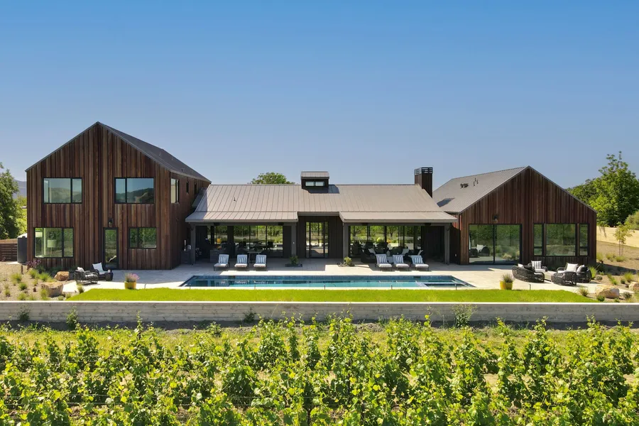 This newly completed home by NOVA Designs + Builds, offers breathtaking views of serene vineyards, Stag's Leap, the Mayacama Mountains and Mt. St. Helena. Thoughtfully designed for seamless daily living and grand entertaining, the centerpiece is a lofty great room with warm, sophisticated tones throughout. Pocketing glass doors provide uninterrupted views and a seamless indoor-outdoor connection. Outside, a covered dining area, outdoor kitchen, and lounge spaces surround a pool framed by landscaping and vineyards. The luxurious primary suite includes a bedroom overlooking the pool and vineyards, a spa-like bath with a steam shower and soaking tub, a large walk-in closet, a gym, and an office. A second main-level primary suite adds flexibility and comfort for guests, while four upstairs guest bedrooms offer picturesque Napa Valley views. Ideally located near Yountville, famed for its world-class dining, art, and boutique shopping. Enjoy close proximity to Downtown Napa, and approximately a 1 hour drive to San Francisco.