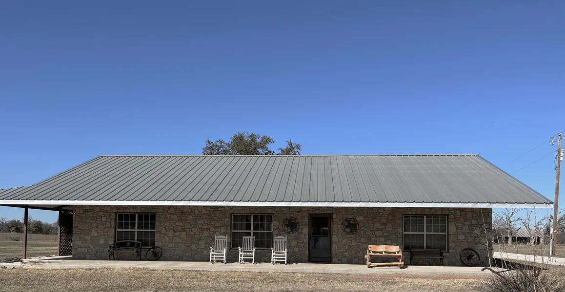 Adorable all rock 3 bed, 2 bath home on 4.76 ac just a few miles south of Comanche. This property has 3 ac of great coastal that is irrigated by two irrigation risers fed by a strong well with a 1.5 horse pump. There are multiple out buildings including a 30x50 metal building with a full in-law suite. Also a 20x30 pole barn with a stall and pen for a horse or show animal or chickens. And a 12x18 storage building. The home is metal framed with perling and I beams. The exterior walls are metal studs and interior walls are wood studded. The exterior is completely maintenance free being all rock and metal roof. There are 2 water heaters, one electric and one tankless gas. There are 2 electric meters. One for the big shop and in-law suite and one for the house and front pole barn. There is also a full RV hook up on the East side of the house by the carport. This is the property everyone is looking for.