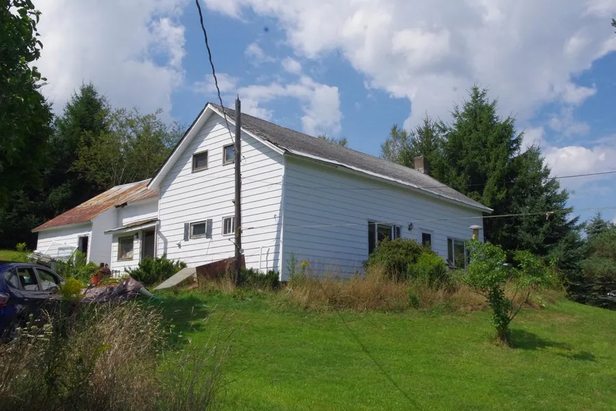 Operating dairy farm, 122acres, 40 tillable, rest pasture with stream and some woods. Large 65 cow barn, 2 silos, pipeline , cleaner, and bulk tank. 50x50' 2 story barn for machinery, hay and livestock, trailer. Both barns are rented. The trailer could be.