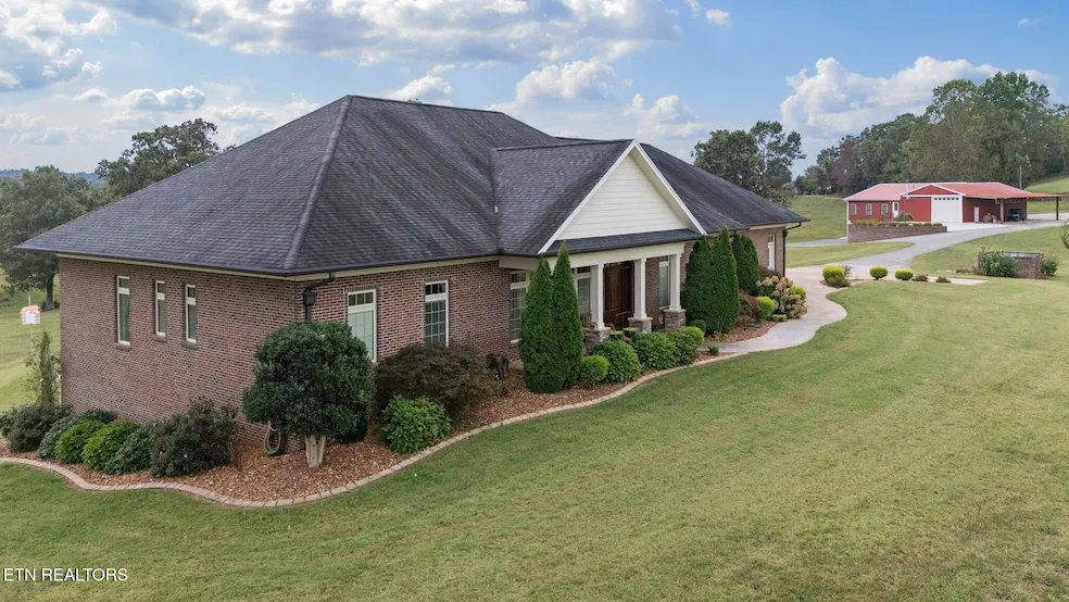 Imagine owning a palatial estate with over 121 secluded acres in Middle Tennessee, just two miles from Dale Hollow Lake. A beautiful custom home, built with all concrete and brick with hidden features, separate guest quarters tucked inside the custom detached barn workshop, RV parking, and more! While the home is amazing, and we will get to those details, the land is absolutely breathtaking! The border of the property is a year-round stream, privately tucked in a back pasture. Three springs, one with a seasonal waterfall, two ponds, massive hardwoods, lush pastures, and even a secret cave!Upon entering through the gated entrance, you're certain to notice the stately brick exterior of the house, but what you can't see is that the entire home is actually tilt-up concrete construction with radiant floor heating and geothermal HVAC, ensuring consistent comfort. Not only is each room zoned se...