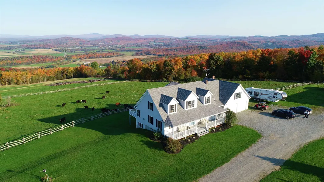 Stunning Views from this beautiful 5000 sq. ft. home nestled on 123+ acres. The spacious Cape home has 5+ bedrooms, 5 baths, a formal dining/living area & den. The finished walkout basement offers guest quarters with kitchen, living, bedroom & full bath. Amenities include tile & hardwood flooring plus chimney for the wood stove. Enjoy the views from either of 2 decks or the rocking chair porch. Parking is inside the insulated 2-car garage. Your horses will love the barn with 6 stalls ,or as a beef barn, hay loft & storage area. About 40 acres fields and pasture, more open land could be created. This property is in Vermont Current Use program. Taxes shown are on 123.4-acres total. A must see home in the country - quiet setting, short drive to town, easy access to I-91, and close to area skiing, lakes & hiking. Easy access to Vast trails and borders large tract of conserved land for great ...