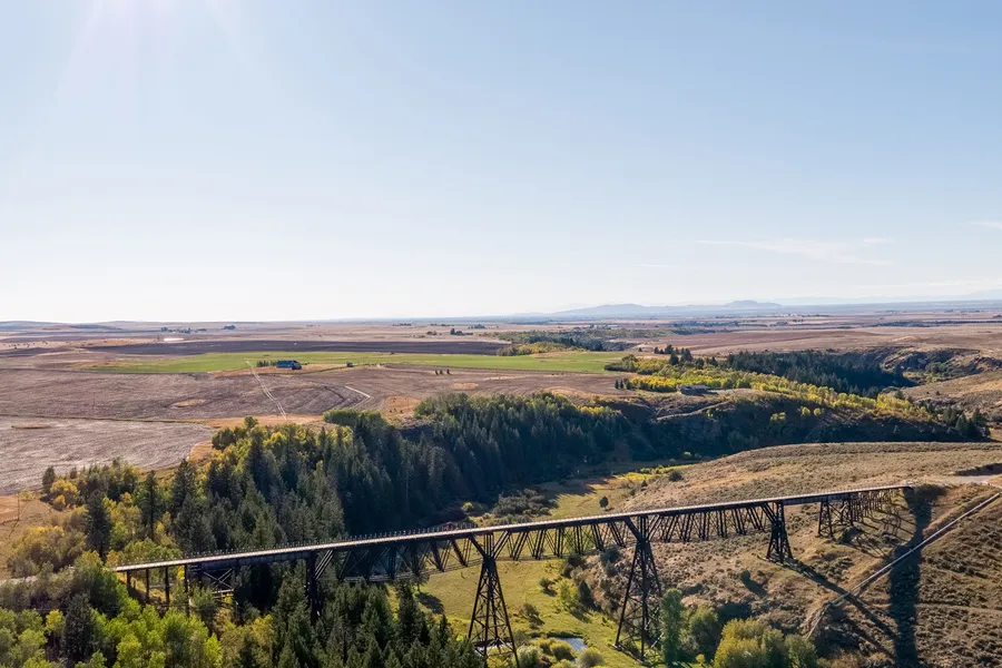If you seek privacy and seclusion, look no further there is no light pollution here! This ultimate private retreat is located on beautiful Conant Creek in Fremont county, Idaho. The propertys diverse geography consists of a stunning lava rock canyon, dry farm, hay farm, heavily forested areas, and creek attracting a variety of wildlife. Consisting of +/- 150 wire fenced acres in four parcels ranging in size from 5.95 acres to 61.94 acres, this special property boasts stunning views of the Conant Creek Railroad trestle bridge and the entire Teton mountain range. The thoughtfully designed, 4,000+ square foot passive solar home includes two bedrooms, media room, loads of storage, a very large gathering area, and safe room with vault door. There are several large areas in the basement that are completely finished and currently being used as a craft room, exercise room and secondary gathering space. The well thought out kitchen includes 48 Wolf professional range with 2 ovens, Subzero refrigerator, recessed and under-counter lighting and quartz countertops. Huge outbuilding located next to Hwy 32 with exterior steel drop box for parcel delivery, 3 barricade gates and large buried propane, diesel and gasoline tanks are just a few of the amazing amenities this one-in-a-million homestead offers. Nearby forest access and world-class fly fishing rivers and streams offers peace and solitude in addition to a plethora of outdoor activities at your fingertips.