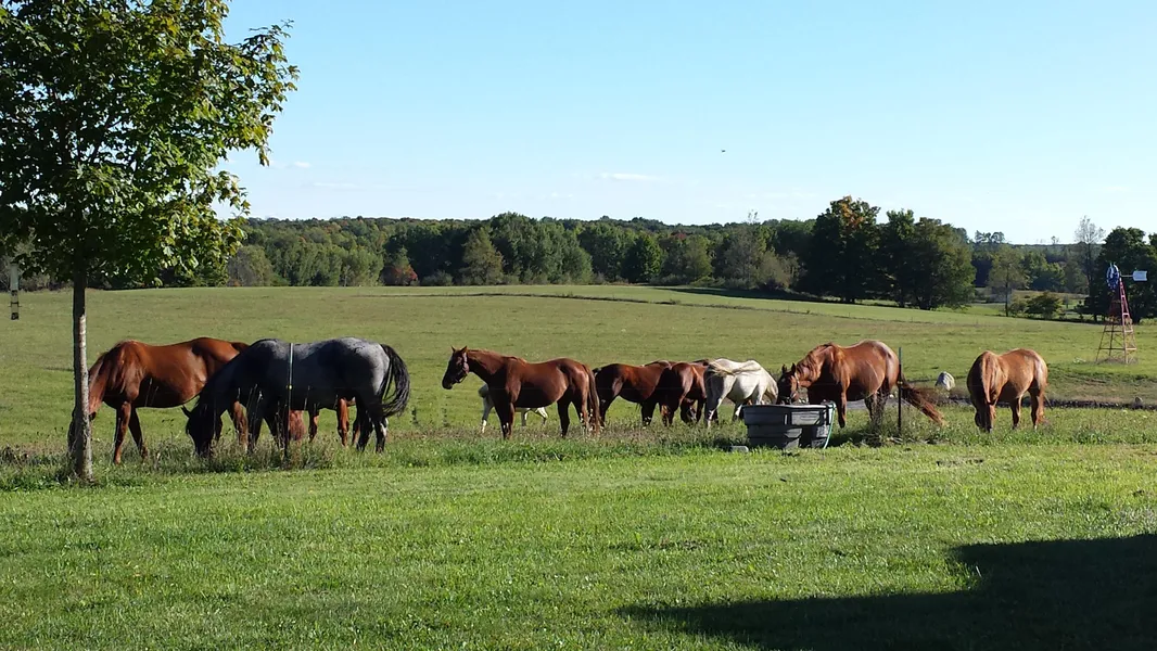 Beautiful Log Home overlooking a working Ranch/Farm built on 123 Acres. This Ranch has previously produced Beef, and is currently producing Hay and High Quality Reining Horses. It is perfect for a hands on Rancher or an absentee owner who would like a Private location for a Farm/Ranch. This facility is designed for ease of farm maintenance with in-ground Livestock Waterers, Barns and Storage Buildings. There is an extraordinary abundance of Deer and Turkey for hunting or viewing on property. There are beautiful views in every direction of Woods or Pasture from the Wrap-Around Porch. The home is very comfortable and easy to care for. Main Level has Hardwood Floors and all modern conveniences. There are two separate Furnaces and two Air Conditioners. Driveway is a half a mile of deep crushed concrete and very stable. A horse lovers dream as the pastures, the 30 x 48 hay ban and adjacent stable are nearly new and ready for use. The Main Garage has Front and Back doors for easy access with room for four vehicles and lots of tools and equipment. The additional Garage has been used for farm vehicles and equipment. Perfect for Rural Living/Working, a weekend Get a Way or a comfortable Hunting Lodge. Additional, adjacent properties are not included but is available with lots of Hardwoods and Fertile Hay Fields. This includes a 20 Acres Hay field and another 63 Acre Parcel with wide trails through beautiful hardwoods for recreation and hunting.