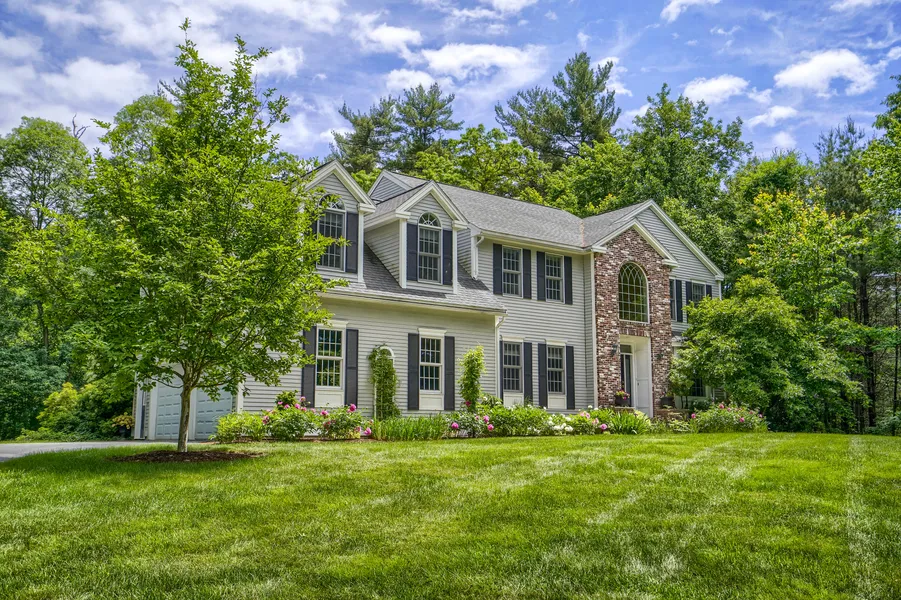 The spacious master bedroom suite features dramatic cathedral ceilings and spa bath with oversized shower and tub. Three additional bedrooms and full bath are also located on the second floor. And just wait until you see the huge bonus room over the garage with its own private staircase. This beautiful cul-de-sac neighborhood is in a private setting while offering a convenient location close to schools, shopping and interstate 93. Two car attached garage with a staircase directly to the basement. The level back yard is just gorgeous with perennial plantings and loads of privacy. Plus, a rare Stewartia tree greets you at the front walkway. Welcome home!