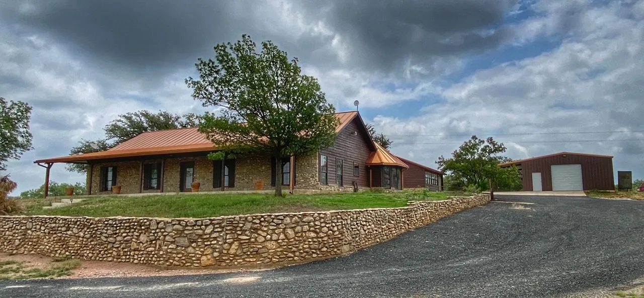 No ranch is complete without a barn. Just a few feet away from the house on a concrete slab is a 1,200sf (per C.A.D.) metal building to house your toys and equipment. It even has a great covered porch area, for when you just need a porch. The spray-foam insulated ceiling really helps cut down on that Texas heat too.