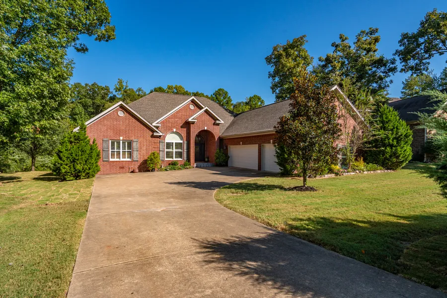 Tucked quietly at the end of a cul-de-sac in the gated Eagle Rock community, this elegant single-level residence captures the essence of refined living on a serene, tree-lined half-acre bordering a babbling creek. Every detail reflects quality—from its impressive brick façade and manicured landscaping to the warm, light-filled interiors designed for both comfort and entertaining. An inviting entry opens to gracious living spaces with a gas-lo fireplace, plantation shutters, whole-house Control4 a/v system, and sweeping wooded views. The gourmet kitchen offers built-in stainless steel appliances, including a gas range, double full-size refrigeration, a generous pantry, and a palatial island flowing to the casual dining area and covered patio beyond. The 1,250-sq-ft primary suite provides a peaceful retreat with a spa-inspired bath featuring whirlpool tub, walk-in shower, and custom closet system. Mature trees and the soothing creek create a private oasis. Additional highlights include a 3-car side-entry garage, irrigation, and access to the gated community pool and picnic area. With effortless access to US 70 East, it’s ideal for commuters to Saline County or Little Rock.