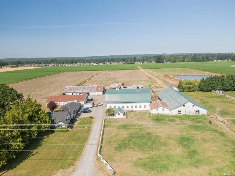 Historic farm with big barn at Arlington near north Marysville. 4 bedroom farmhouse + numerous outbuildings for storage, critters. Bring your business ideas. Property includes 20 level acres, ideal for farming.