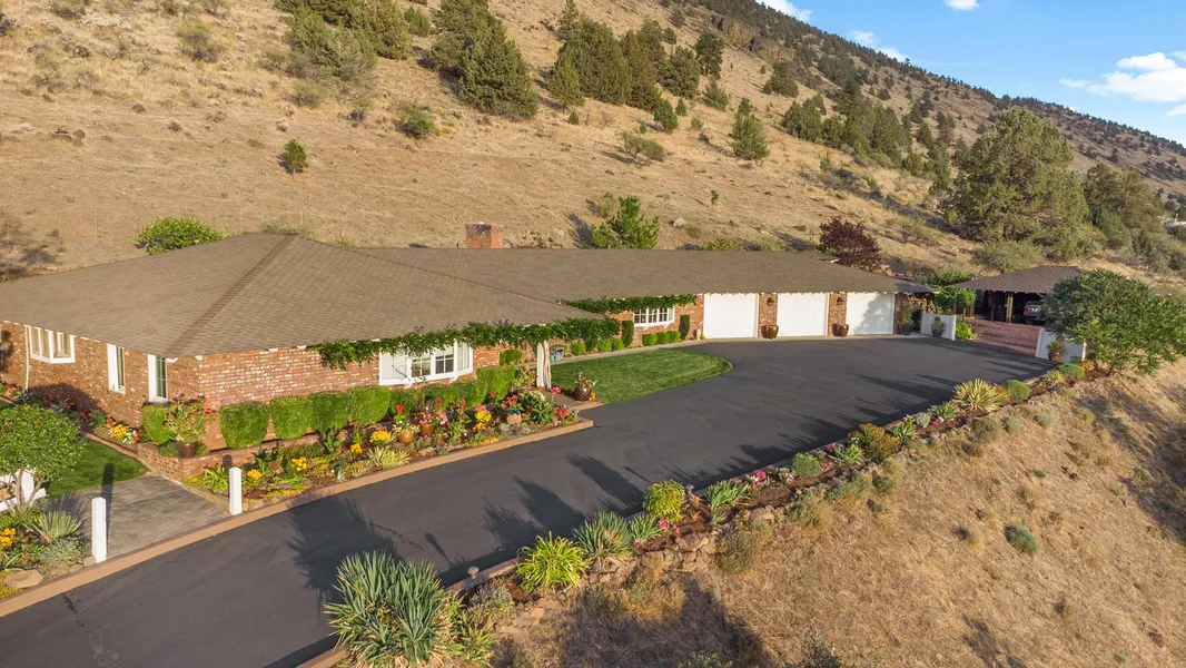 This appealing California ranch is beautifully renovated and offers an absolutely breathtaking panoramic view of the Klamath Basin! Away from traffic, you can enjoy the solitude of captivating morning sunrises and evening sunsets viewing Mt Shasta! Located just minutes from town in the desirable Pine Grove neighborhood, this one level home has 2,624 sq ft of living area with 3 extra-large bedrooms & 3 baths. There is an attached 3 car (+) garage plus an additional detached 3-car carport (enclosed on three sides), a greenhouse, and pumphouse, each matching the home. This quality home has top-of-the-line upgrades throughout. The property consists of 7.81 acres with a picturesque, landscaped yard and natural hillside behind. Paved driveway with electric gated entrance. This is one-of-a-kind property in immaculate condition!