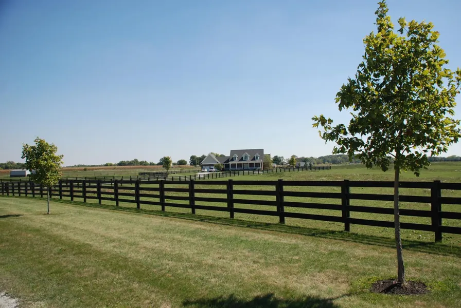 Building Description: 4 Bdrm home with 4.5 baths, kitchen w/breakfast area, formal dining room, family room w/fireplace, office, laundry room, finished basement and storm shelter. Home has two car garage, geothermal heat, air conditioning and its own well. Main barn is 80' x 210' with 64 horse stalls, trainer's office, break room and upstairs living quarters. Mare barn has 24 stalls, breeding stall and wash bay. All paddocks have automatic waterers. 92' x 84' machine shed includes an 80' x 84' shop and 12' x 84' lean-to. Property includes 6 ton bulk feed tank, (2) 20' x 60' storage barns, 1/2 mile training track. Property is complimented by approximately 4500' of black board fence.