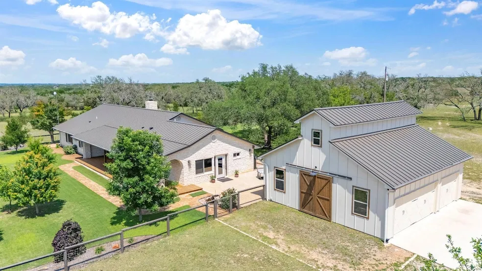 Discover Hope s Ranch, a stunning 125.43-acre luxury equestrian estate nestled in the Texas Hill Country, just 30 miles north of Austin. At its heart lies a beautifully renovated 3,309 sq ft home featuring three bedrooms and 2.5 baths, designed for effortless entertaining. The open-concept living area showcases a chef s kitchen with a generous island, quartz countertops, custom cabinetry, KitchenAid appliances, and an induction cooktop. Floor-to-ceiling, energy-efficient windows flood the space with natural light and frame sweeping Hill Country views. Unwind on the vaulted-ceiling cedar porch as you watch the sun dip below the horizon, or retreat to the primary suite, where sliding glass doors open to the outdoors and the spa-inspired bath boasts a walk-in shower, jetted tub, and picture-perfect window. Equestrian amenities are second to none: a 150' x 300' lighted arena, a covered 62' round pen, a five-stall barn with tack, feed, and wash rooms, plus a four-stall barn and a 50' x 75' hay barn. Two lean-to shelters provide additional shelter for horses or livestock. The property is cross-fenced, Ag-exempt, and includes 30 acres of fenced hay ground. A 30,000-gallon rainwater collection system feeds the front and back of the house with automatic irrigation and offers a fire-hydrant connection that can be adapted as the home s primary water source. The oversized detached three-car garage accommodates a crew-cab truck and features interior and attic storage. Additional highlights include a 16' x 40' arched cabin with full utilities and a separate build site primed for expansion. Formerly home to a thriving equine therapy nonprofit for over two decades, Hope s Ranch carries a rich legacy and is turnkey ready whether you envision an elite private retreat, income-producing agricultural venture, or premier horse facility. Enjoy abundant wildlife, meandering ranch trails, and ultimate privacy behind a gated entrance, making each day at Hope s Ranch unforgettable.