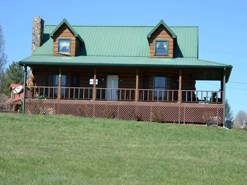 Custom built log home on Caney Creek in Rogersville, Tennessee. 3 bedroom, 2 bathroom with large kitchen with new granite counter tops, bar, and breakfast nook. Nice large living room with stone fireplace that has been connected to gas but could be made wood burning again easily. Master bedroom is on the main level as well as laundry room. Large second bedroom on upper level and large loft for third bedroom as well as huge bathroom upstairs. Outside amenities include large garage/workshop with unfinished apartment above workshop. All situated on 5.14 gently rolling acres adjoining large flowing creek. Only 5 minutes to quaint town of Rogersville, Tennessee, 15 minutes to Morristown and I-81. Only 1 hour to Kingsport, Tennessee. Suitable for few animals or just a great large yard for the family to enjoy.