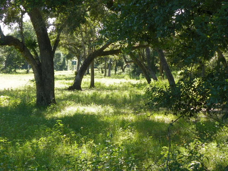 The habitat is mostly sandy loam soils with a diverse tree cover of live oak, post oak and water oak. There are also a few cedar, Texas ash and hack berry. The under story is predominately yaupon and American beauty berry. The surface has a gentle slope with the southern and eastern ends of the property approaching a neighboring creek which adds a little riparian habitat to the mix...