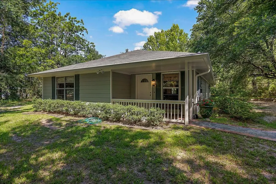 Unique and fully renovated 2 bedroom, 1 bathroom cottage. As you enter, the home features a spacious living room with access to bedrooms and the kitchen. Bedrooms are roomy and share a custom bathroom with unique tiling details throughout. The U-shaped kitchen provides ample space for cooking and entertaining with barstools on both the living room and family/dining room sides. The family/dining room opens to the back porch with views of 6 wooded acres with large pines and hardwoods. Enjoy a short walk through the woods to the stocked pond at the back of the property. This is the perfect property for full time residence or weekend getaway near the lake where privacy and quite abound!