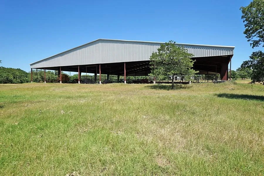 Scattered to thick tree cover over 55% of the property, primarily consisting of post oak, and the balance is open.
