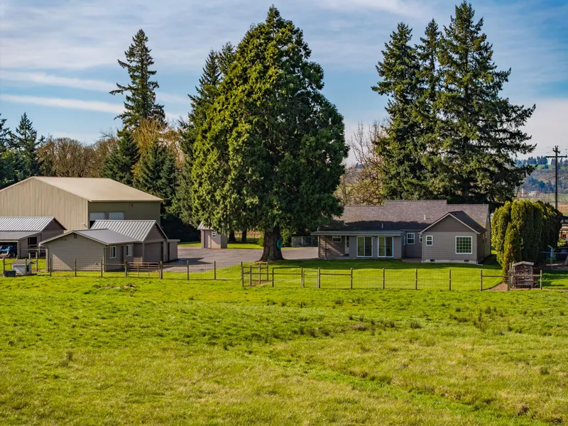 Welcome to your completely updated 11 acre ranch with 10 acres of New Zealand fenced and irrigated pasture! This charming homestead blends the country living with modern conveniences, making it an ideal haven for those seeking a balance between work and play. From the paved drive, you can easily access the huge shop, hay barn and completely separate contemporary office w/ its own kitchen. This property is set up for 10+ head cattle and could be easily converted for your livestock needs.
