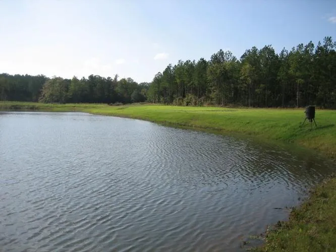 Gently rolling terrain with 12 acres of food plots. Stocked pond. Good interior roads.