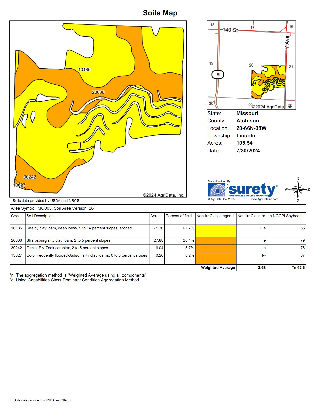 Search for detailed parcel information including; Elevation & Vegetation Maps, Ownership Information, Detailed Parcel Information, Crop History Map, Soil Survey Productivity Data, and more.