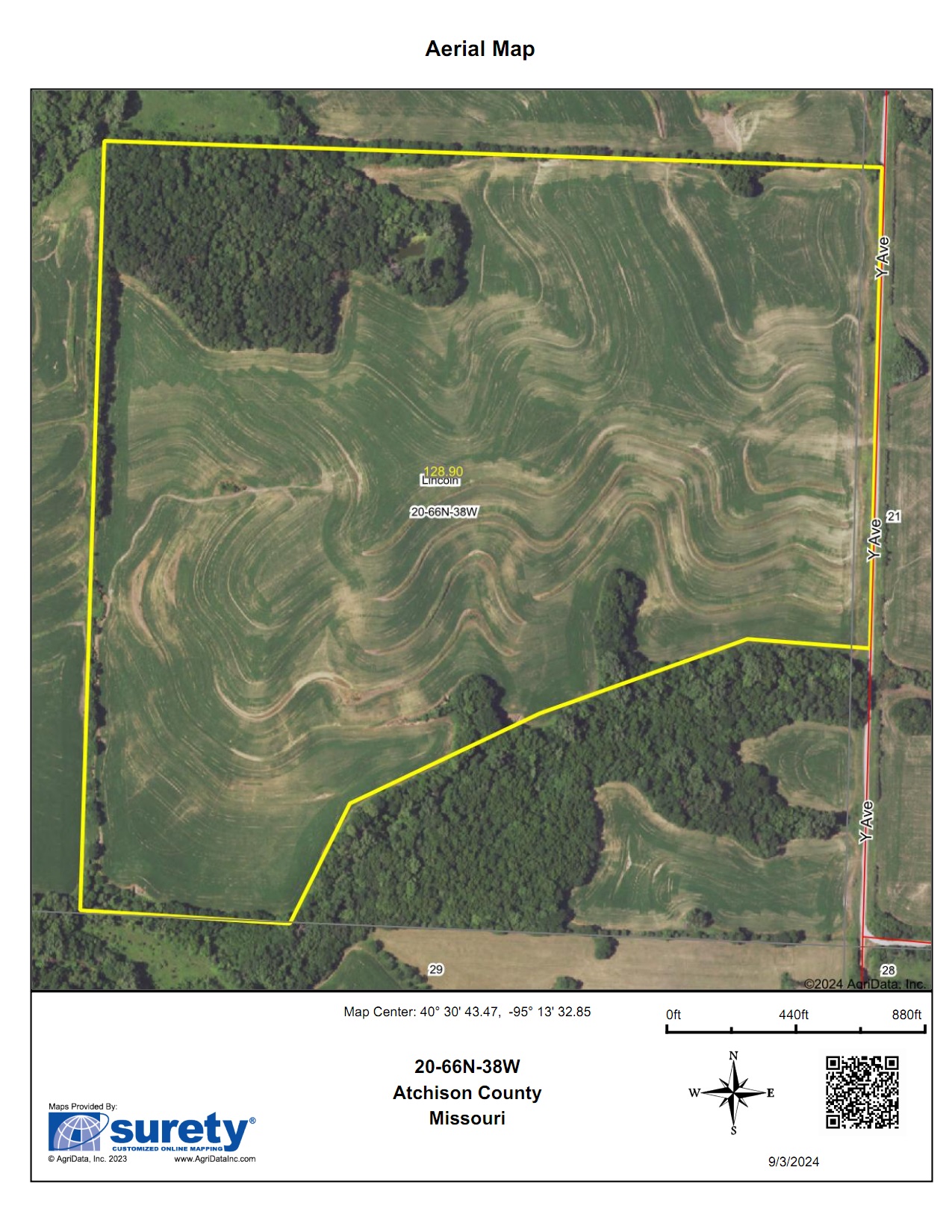 This 128.9-acre property offers an excellent balance of income, recreation, and long-term investment potential. Currently, 102.87 acres are in active tillable production.