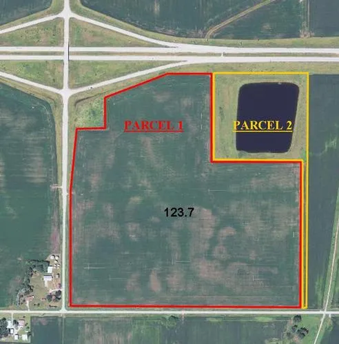 Parcel 1: 128.0 acres, m/l, with est. 123.7 crop acres and CSR of 78.1
