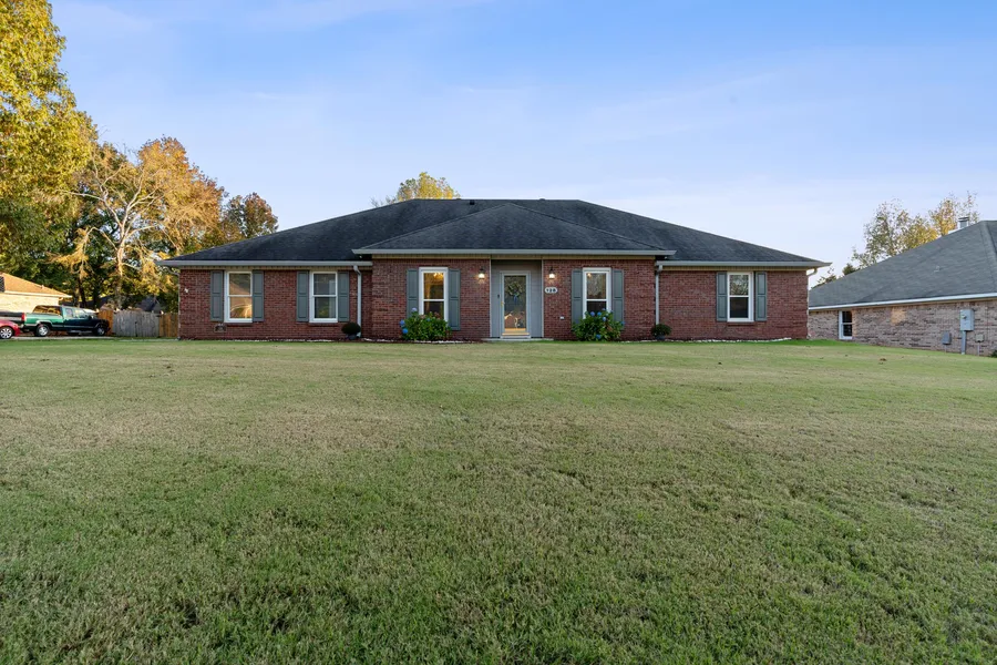 Immaculate home is a MUST SEE! Freshly painted, move-in ready 4-bedroom, 3-bath home in Harvest with no HOA! The private backyard features a fenced-in area, an in-ground pool, a large shed, and a smaller shed for pool toys. Inside, a flex room and dining room flank the foyer. Entertain by your backyard oasis with beautiful inground pool. The kitchen connects to the laundry room and pantry. The living room boasts trey ceilings and a gas fireplace. The master suite includes a jetted tub, walk-in closet, and full bath. A second master suite serves as a guest room or office. New carpet and waterproof flooring in key areas. Attached 2-car garage includes a FEMA-certified storm shelter.