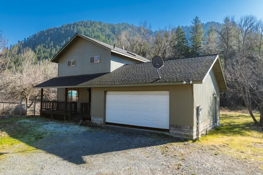 Acreage & Serene Surroundings: Escape to your own piece of paradise! This 3-bedroom, 2-bath home is nestled on a generous 8.49-acre lot. Lower level boasts a large open floor plan with a great room, dining, kitchen with granite countertops and easy glide cabinetry, and a bathroom. Upper level has three bedrooms and a large bath. Hardwood floors and solid wood doors throughout the home. Not far from town and close to I-5 on/off ramps. With water rights, possibilities on your open pasture are endless. Garden, hike your creek, and manage tall timber; a nature lover's dream. Whatever your pleasure, this property has it all. This home is move-in ready, awaiting its new owners to make it their own.