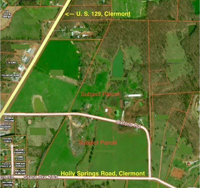 Located on Holly Springs Road, less than a quarter mile from US129 in Clermont, Georgia, this parcel of 129 acres could be ideally suited for a number of end uses.