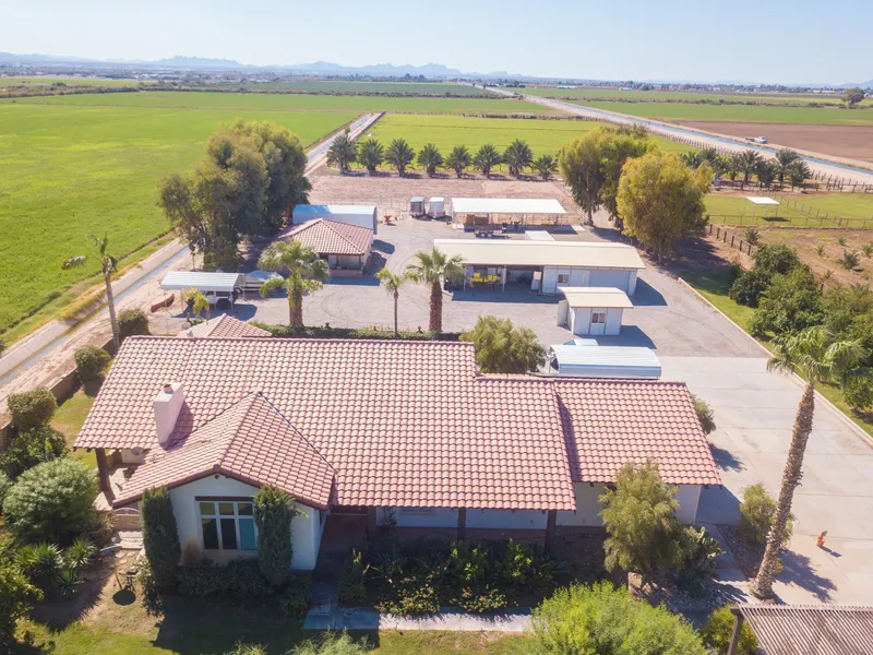 Country Estate Home, One of a Kind!!! This 3201 sq ft home has 3 Bedrooms and 2 baths plus a Casita with its own Kitchen living room, bedroom and bath. This spanish style home includes solar panels that are paid for and comes with unique designs that can only be appreciated when you come take a look. There are over 100 Medjool dates, many kinds of Citrus and other trees. Also comes with Garage, Barn, Covered parking, Corrals, pasture with flood irrigation. To much to try to cover everything, need to see this one for yourself.