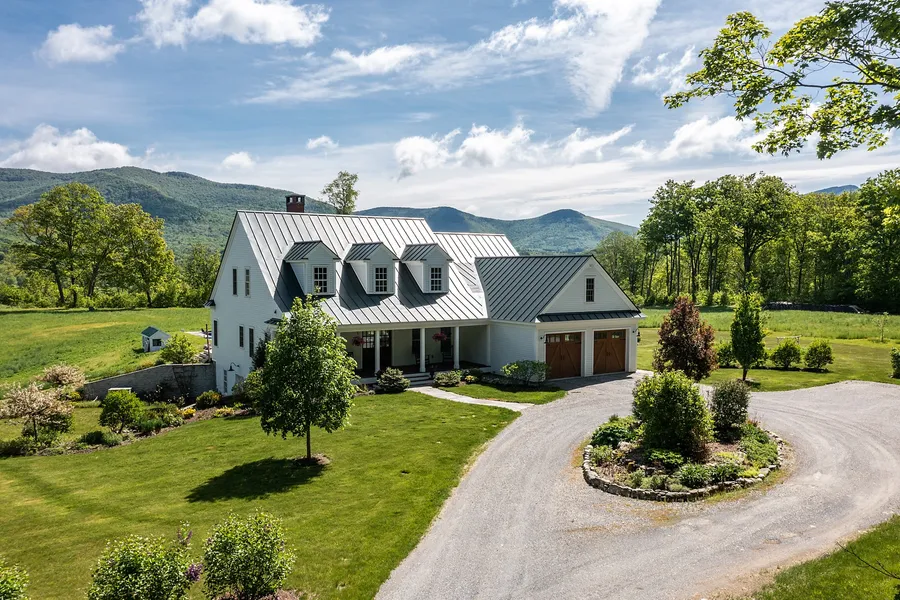 Stunning Dorset Farmhouse on 13.4 acres located a short quarter mile from Dorset Village. This unique property built in 2017 offers beautiful pastoral and mountain views. Walk in from a covered porch to this open-styled, vaulted ceilings spacious eat in kitchen and living room with a custom wood-burning fireplace, dining area offering panoramic views of Green Mountains. Master bed and bath suite on ground floor includes high ceilings with wide open space for sitting area as well as shower, tub, separate built-in vanities and walk-in closet. Walk-out patio from master bedroom. There are two additional bedrooms and bathroom on the first floor. Large family room on the second floor with a bedroom and unfinished 650 square foot room on the second floor. The outdoor living spaces include a covered porch, a large deck, bluestone patio with a firepit, pool with stone surround and flat lawn for ...