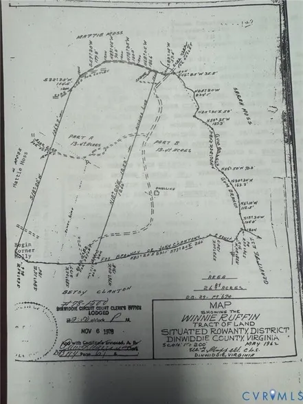 13.4 Acres in Dinwiddie County! Come take a look at this property! Private setting with pond views! No known ownership of pond. Access is a down private drive named Whitmore Moss Dr. off of Fox Branch Rd. Please see supplements for Plat.