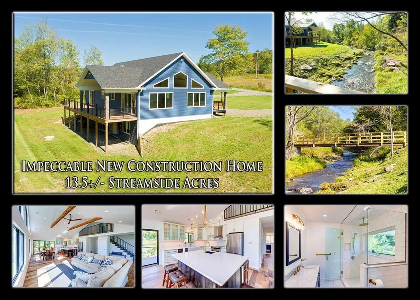 This newly constructed luxurious home is waiting for you! Immerse yourself in nature with the convenience of easy access on a quiet, town-maintained road in the beautiful mountains of Franklin in Upstate New York. Nestled in nature with forest & water views along with peaceful sounds of the babbling waters of East Handsome Brook, this 3-bedroom, 3-bathroom contemporary offers 13.5+/- acres of land with the ideal mix of open meadows and woods dotted by old stone walls, creating endless recreational opportunities such as hiking, hunting, fishing, ATV riding, and snowmobiling on your own land. Indulge in the architectural elegance of this home with an open-air feel, vaulted ceilings, and spacious modern custom designer kitchen. Oversized Anderson windows were selected for their high-end quality to showcase the impeccable views of the stream no matter what room you may be in. Relax or entert...