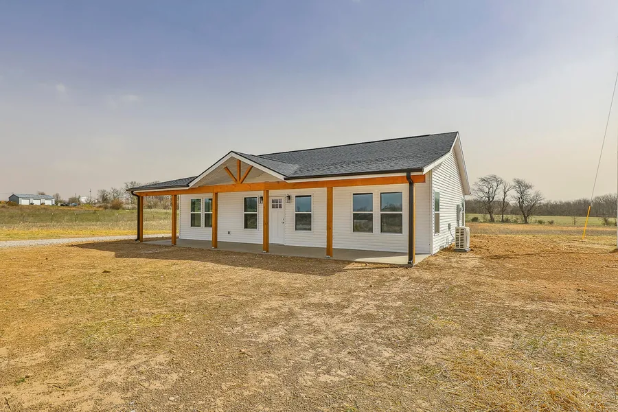 Welcome to this stunning 3-bedroom, 2-bath home with a spacious 2-car garage, perfectly situated on 8.66 beautiful acres offering breathtaking views in every direction. Featuring an open and efficient 1,500 sq ft floor plan, this home is designed for both comfort and functionality.Step inside and be greeted by soaring 13-foot vaulted ceilings in the great room, creating a bright and airy living space. The kitchen boasts elegant granite countertops, while premium tile finishes elevate both bathrooms.Enjoy the outdoors year-round from the inviting 8-foot deep covered front porch, or explore the serene property, complete with lovely pasture, an excellent ridgetop home site, a long private driveway, and a tranquil wooded area.This is the perfect blend of modern living and country charm--schedule your tour today! Owner is a licensed MO Realtor. **note: house is in the early stages of construc...