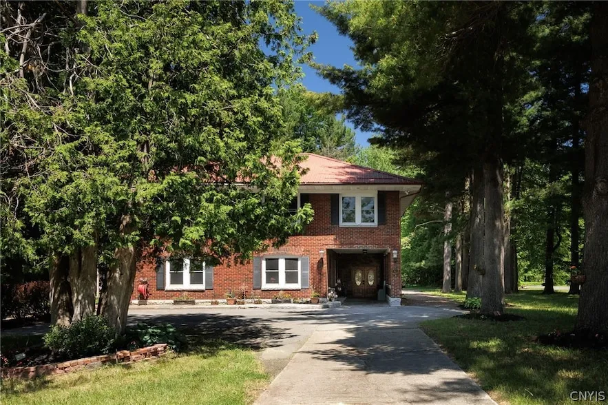 Elegant Brick Colonial Estate, a truly rare offering now available! Discover your dream home with this breathtaking 6-bedroom, 3.5-bathroom home nestled on 13.65 acres of pristine, high-quality land. A property that has to be experienced to believe, with character and features sure to impress the most discerning buyers. Custom oak cabinetry and finishes throughout, with a prime location minutes from Watertown and Fort Drum. An expansive master suite, with a breathtaking en-suite bath and sitting room/office. This unique property offers unparalleled tranquility and beauty, making it a must-see. The attached garage and barn space are expansive and impressive, featuring 5 covered parking spaces to help shelter from the north country winters. A private pond and walking trails will thrill the outdoor enthusiast, while modern amenities and design create a cozy climate in the home. Whether you're looking for a peaceful retreat or a family haven, this stately home has it all. Experience the charm, elegance and pride of ownership of this extraordinary home for yourself. Don't wait, call or text today to schedule your private viewing!