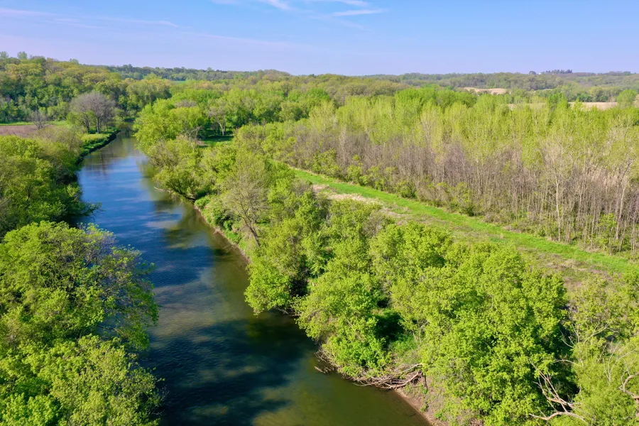 Stroll through beautiful native prairie grasses, admire the healthy grove of young walnut trees, or take in the sounds of the river nearby. The land is dotted with wildlife habitat areasincluding year-round waterholes that attract deer, turkey, pheasant, and waterfowlmaking this spot ideal for both quiet enjoyment and seasonal hunting.