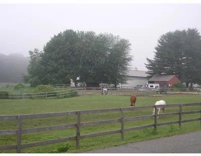 Turn-key equestrian facility, complete with 17 stalls, wash stall, tack & grain rooms. Attached indoor arena with new footing and a full wall of mirrors. Fenced paddock/pastures with water and electricity.