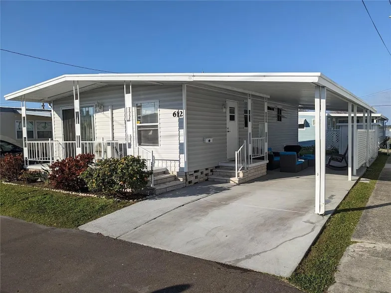 Discover comfort and convenience in this beautifully updated double-wide manufactured home in the desirable Lake Shore Park, a 55+ community nestled next to the stunning Lake Maggiore. This fully furnished home features 2 bedrooms and 2 full bathrooms, an in-unit washer and dryer, and stylish updated flooring, cabinets, and appliances. Enjoy outdoor living with a covered patio and carport, plus two storage sheds for extra space. A new wrap on the roof adds peace of mind. Lake Shore Park offers fantastic amenities, including a community pool and shuffleboard, creating a vibrant and active lifestyle. Don t miss this opportunity schedule a showing today!
