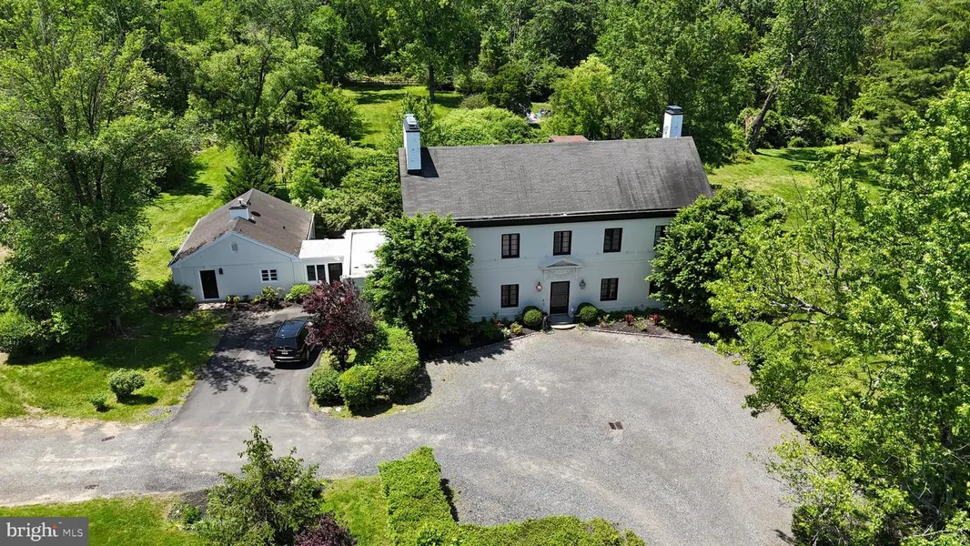 Timeless 1920's residence on 13 acres with guest apartment and subdivision potential! Set on approximately 13 acres of estate-like grounds, this stately colonial offers classic architectural elegance and rare versatility in a premier setting just over the Princeton/Montgomery border. A long drive leads to the main residence which spans three stories and features five bedrooms, including a luxurious primary suite with its own fireplace and balcony. An additional one-bedroom apartment with private entrance and separate utilities, offers ideal accommodations for guests, extended family or live-in help. Graced with four fireplaces, including those in the kitchen, library, living room and primary suite, this home exudes warmth and character throughout. Original details such as pocket doors, French doors, bluestone terraces and refined millwork evoke a bygone era of craftsmanship, while a new ...