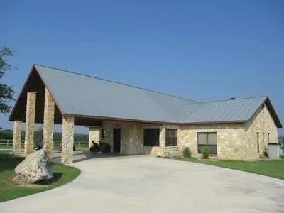 BEAUTIFUL 130 ACRE HIGHLY IMPROVED RANCH PROPERTY W/ SCATTERED LIVE OAK TREES & IMPRESSIVE VIEWS OF THE SURROUNDING COUNTRYSIDE! A LARGE, ROCK HOME W/ HIGH CATHEDRAL CEILING, OPEN FLOOR PLAN, CIRCULAR DRIVEWAY, ROCK FIREPLACE, WET BAR,